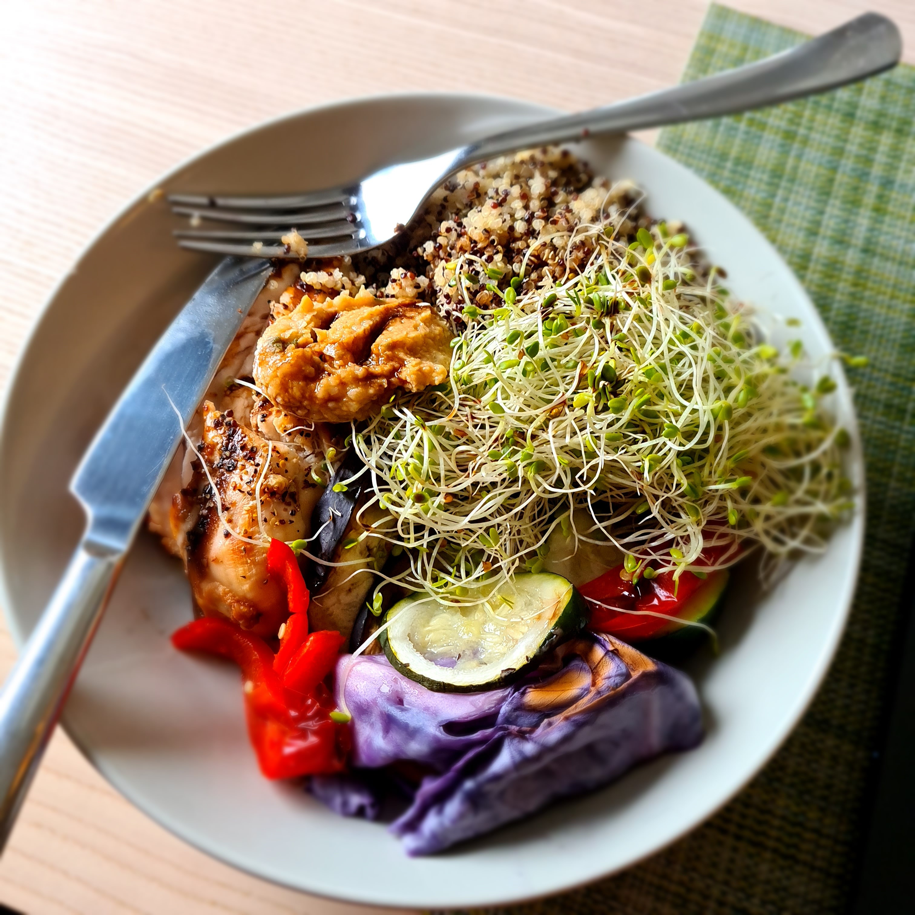 Being able to plan and make food with care and thought is a tell tall sign life is getting a little bit better in terms of stress and work load. This is very easy to make; I just baked the veggies in the oven next to a pot with chicken breast. I made enough for 2-3 days lunch (pre ride)