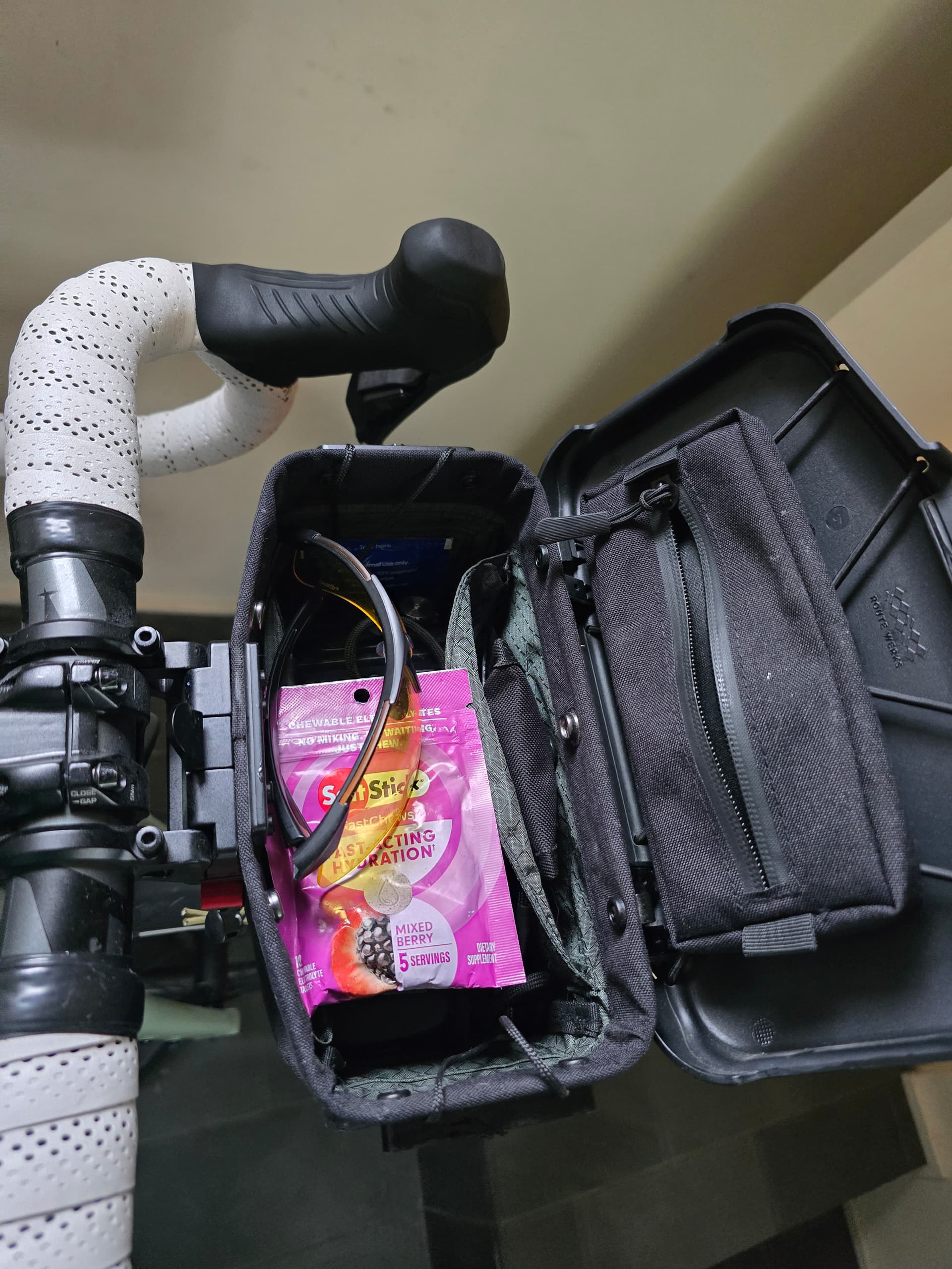 My friend had gifted me this cool box that mounts on my handlebars and has a lot of room for goodiesâŚalso the camelback has pockets for goodies so between the two areas I could stash stuff I had my tools just in case and food for myself plus extraâŚyou never know when you drop something or come upon someone else who is unprepared and needs some calories. My absolute favorite on the bike fake food is Clif Shot Bloks and my close second favorite are sports beans by jelly belly- - especially the sour flavors. The best food for YOU is the one you will readily eat that is also converted quickly to energy. I also keep salt tabs (salt stik brand). As I noted earlier, you can DIY a tasty âgelâ by mixing a bit of salt and maple syrup and put it in a small squeeze bottle. I will have a PBJ sandwich and fruit for later in the ride but I begin consuming my fake food during the first hour on the bike - usually around 45 minutes in since I just had breakfast. Then I try to take in a little here and there every 30 minutes. If you wait until you are hungry it is already too late. I learned that doing Ironmans. Figure you have roughly 1000 calories of blood glycogen to play with. If you are like me you will burn about 3000 calories during a century ride so you need to take in 2000 calories during that ride to avoid bonking. I can process a lot of calories an hour comfortably - - my IM coach was a large male and I could process more calories on the bike than he could. It is an ability that has nothing to do with size or genderâŚor at least very little. The equation is unique to each individual so you have to play with your nutrition to dial it in during those longer back to back rides. I made a rough calc of how many calories I would burn on the bike and stocked up on my bike nutrition accordingly so I had the full weekâs supply - - most stayed in my luggage but I brought the daysâ needs with me plus extra just in case and kept it in reach in my little bike handlebar box where I could easily get to it. I did not want to rely on the aid stations having something that seemed palatable to me while exerting myselfâŚalso the less you rely on the aid stations, particularly if they involve people helping themselves to a cooler full of sandwiches and the like - - the less likely you are to pick up a nasty bug. For that reason I also recommend having hand sanitizer on you! You DO NOT want to get a stomach bug on a week long cycling trip.